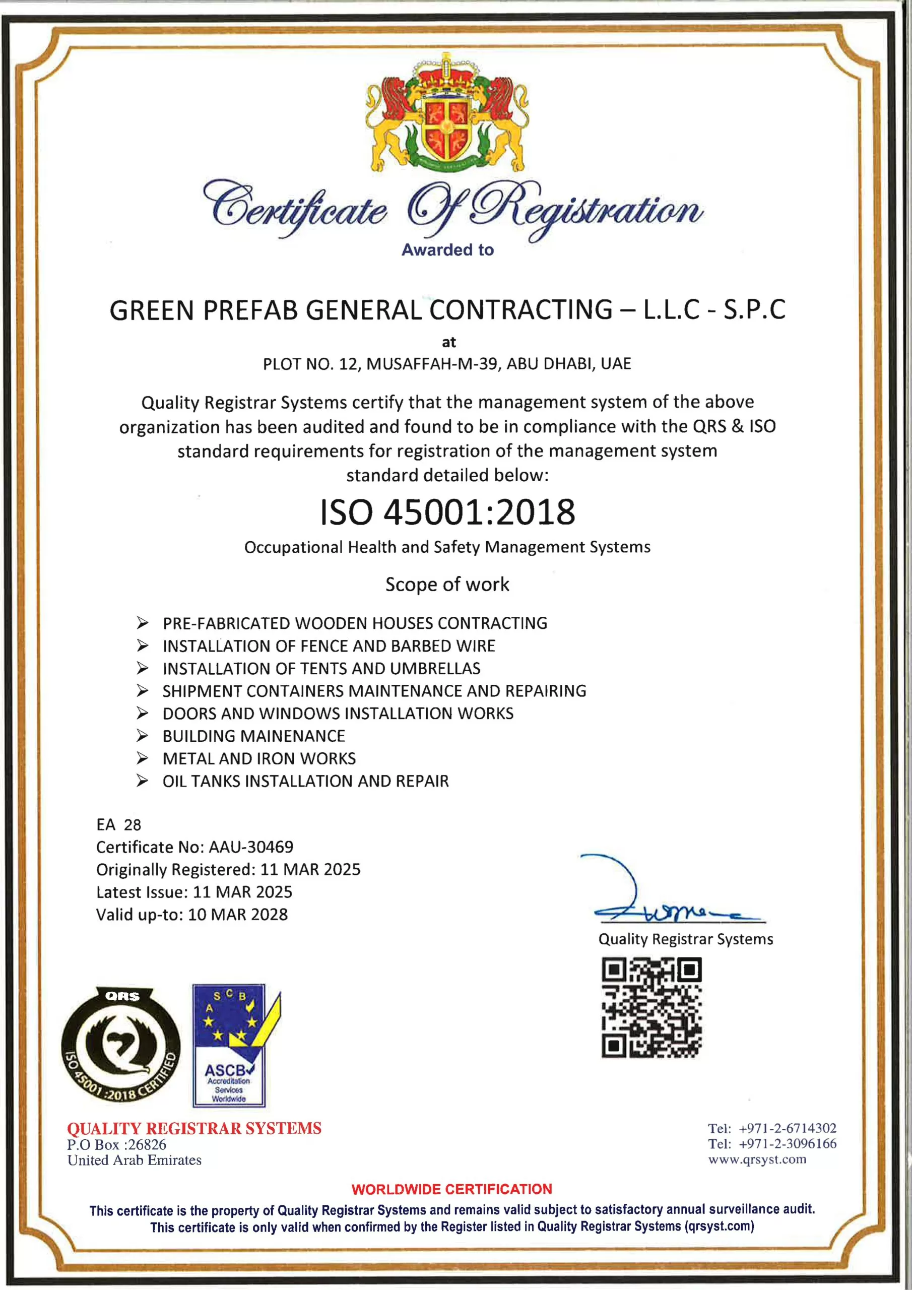 ISO 45001:2018 Certified for Occupational Health and Safety Management Systems